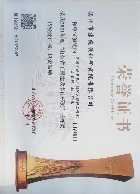 公司勘察設(shè)計(jì)的濱州醫(yī)學(xué)院附屬醫(yī)院門診醫(yī)技病房綜合樓項(xiàng)目榮獲國家優(yōu)質(zhì)工程獎;濱州華濱新苑二期職工保障房住宅小區(qū) 2#、5#、8#樓、濱州學(xué)院民用航空實(shí)驗(yàn)實(shí)訓(xùn)樓三號樓、濱州市市城區(qū)老舊小區(qū)棚戶區(qū)改造項(xiàng)目一期(民安馨苑)5#樓獲山東省工程建設(shè)“泰山杯”獎三等獎;7人獲得山東省“土地杯”農(nóng)村新型住房建筑設(shè)計(jì)優(yōu)秀參賽作品獎;1人獲得2022年濱州市建筑設(shè)計(jì)BIM技術(shù)應(yīng)用技能競賽二等獎;1人獲得2022年濱州市建筑設(shè)計(jì)BIM技術(shù)應(yīng)用技能競賽三等獎;1人獲得2022年濱州市建筑創(chuàng)意設(shè)計(jì)技能競賽一等獎;2人獲得2022年濱州市建筑創(chuàng)意設(shè)計(jì)技能競賽二等獎;2人獲得2022年濱州市建筑創(chuàng)意設(shè)計(jì)技能競賽三等獎。
